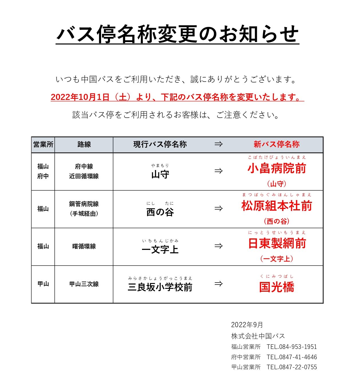 2022年10月1日(土)より下記停留所の名称を変更いたします。