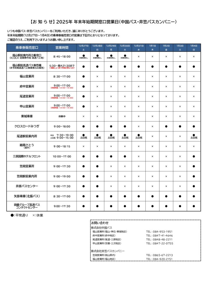 2025年~2026年の年末年始期間における販売窓口の営業日についてお知らせいたしますので、以下の一覧表でご確認ください。