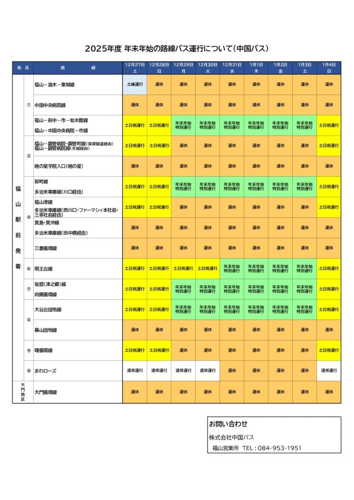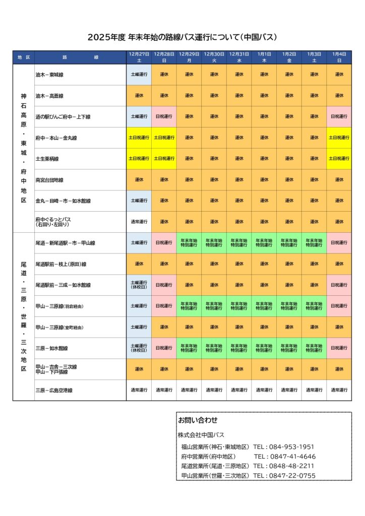 【路線バス】2025年度 年末年始の運行ダイヤについて