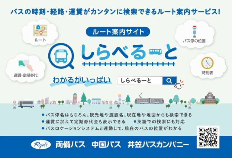 バスの時刻や運賃、定期代などはルート案内サイト「しらべるーと」で調べることができます!