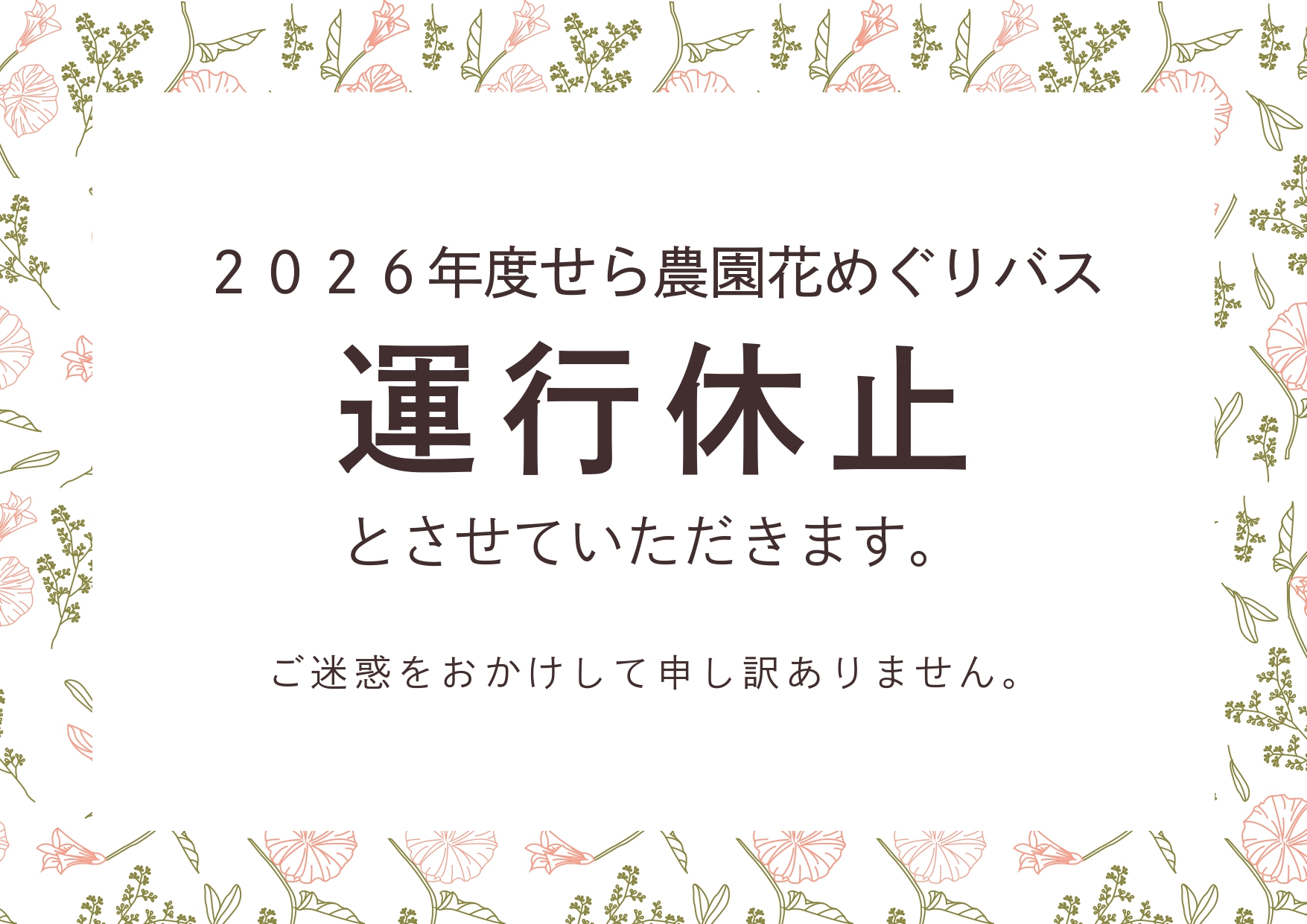 毎年ご愛顧いただいておりました 「せら農園花めぐりバス」につきまして、
