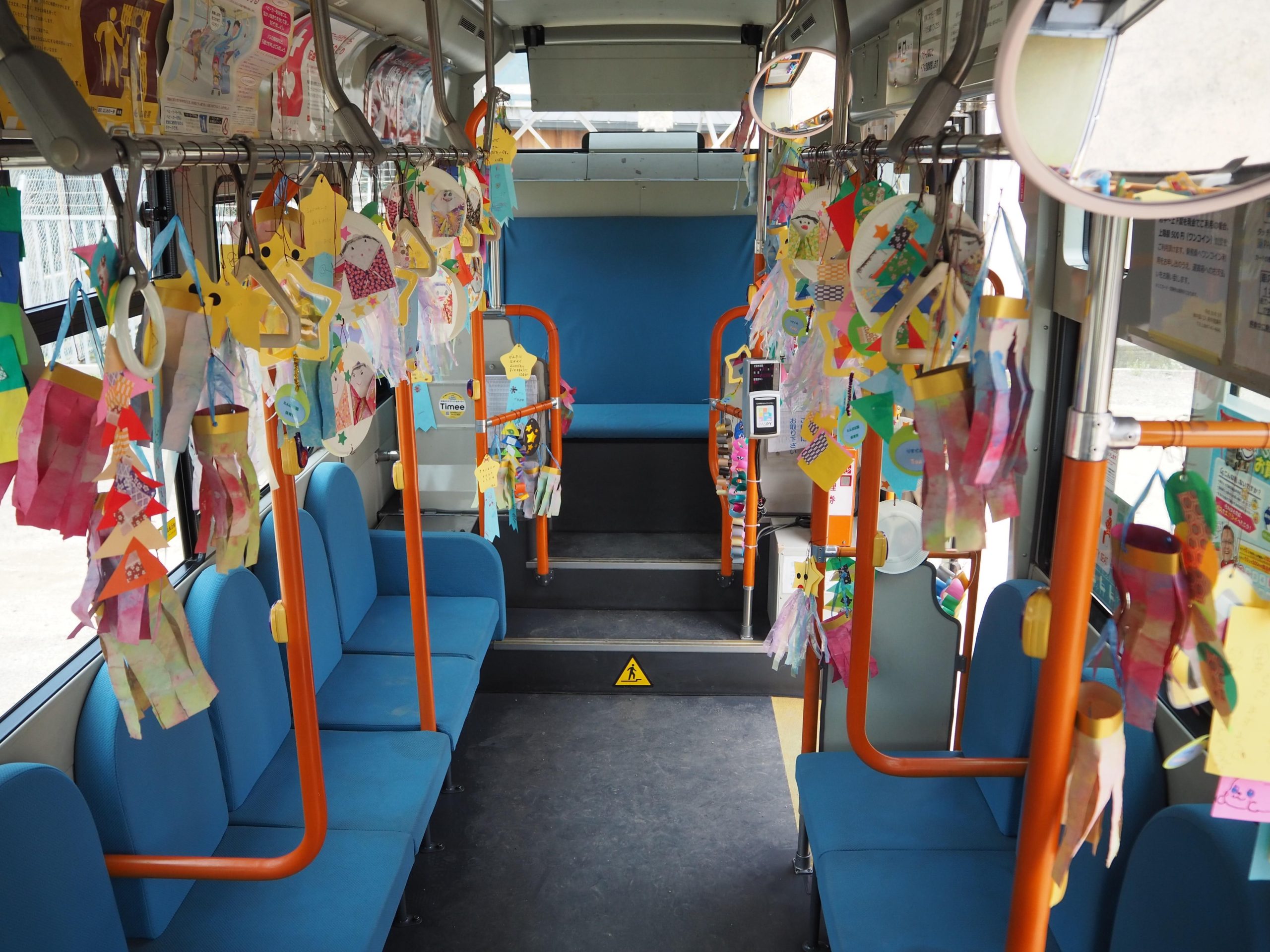 皆様もぜひかわいい園児たちが飾りつけしたバスに乗ってみてはいかがですか?園児たちのかわいいお願い事もたくさん吊しております!
