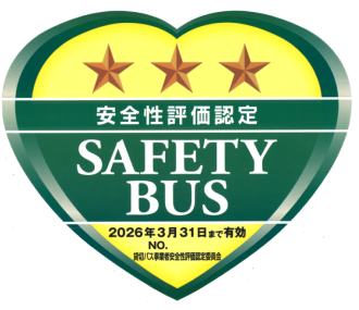 バスをご利用されるお客様が安心してバスを選択できるよう、安全に対する取組状況が優良なバス会社であることを示すシンボルマークです。セーフティバスは、安全に対して弛まぬ努力をし続けているバスの意味です。
