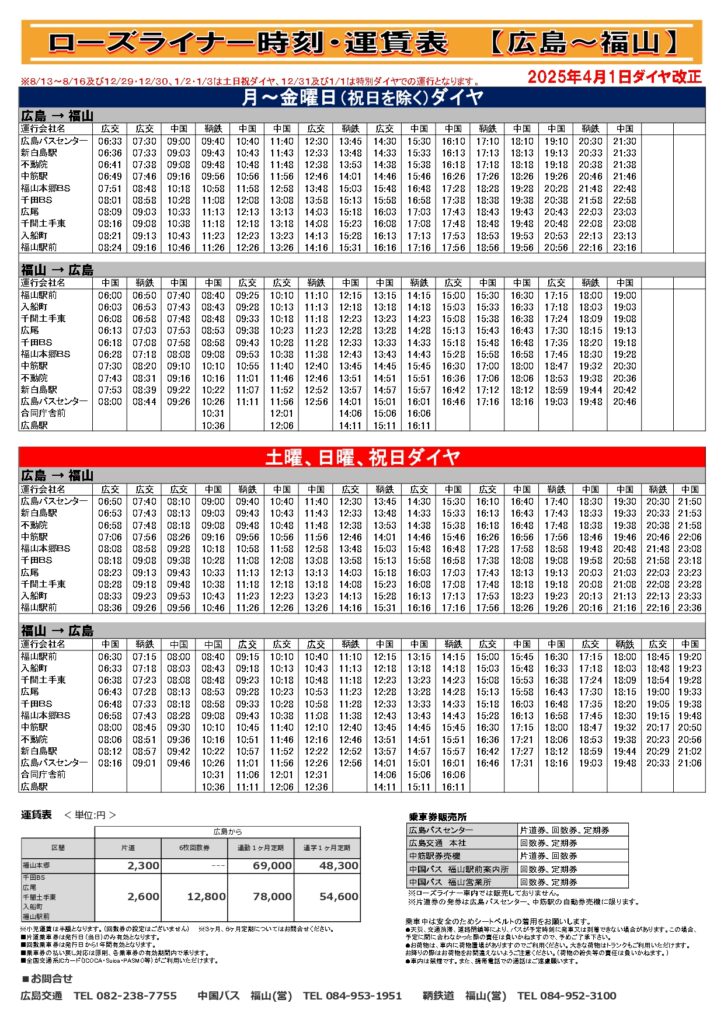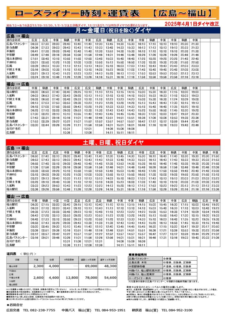ローズライナーは、平成30年4月27日にダイヤ改正いたします! 新ダイヤでは、新たに1日2往復(福山駅 8:00発直行便・11:45発経由便 アウトレット 11:56発経由便・16:00発直行便)、新しく開業いたしますエンターテイメント型アウトレットモール「ジ アウトレット 広島」へ乗り入れを開始します。 「ジ アウトレット広島」は約200店のアウトレットモール+レジャー施設が織りなす複合型新商業施設。その多く(117店)は広島初出店です。 運賃は福山~広島間大人2,350円と、いままでのローズライナーと変わりません!モチロン、福山~広島間の定期も使用出来ます。つまり、ローズライナーで広島へ通勤・通学する方は、お休みの日にその定期でジ アウトレット広島へ遊びに行けるんです。 「ジ アウトレット広島」バス停で降りられる方はとってもお得な割引クーポンブックをゲットするチャンスも! バスなら、何時は入れるか分からない駐車場の空車待ちはモチロンありません。 運転する必要もモチロンなし。その移動時間はフロアガイド片手にお店攻略の作戦会議をしましょう! とても広いアウトレットの駐車場の中では、お店の人もあなたの車がどこに停まってるかわからないでしょうが、お帰りのバス停がどこにあるかはフロアガイドに載っていますので、迷子になりません! ますます便利になるローズライナーで、ジ アウトレット広島にまいりましょう! |