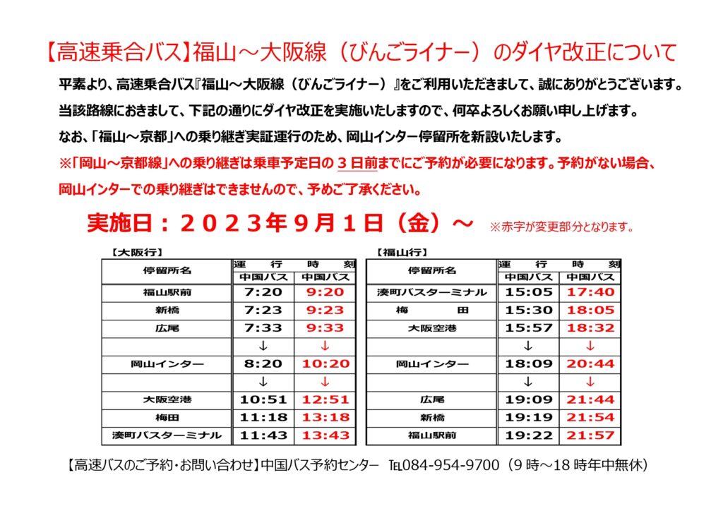 ※乗車予定日の運賃は各予約サイトまたはお電話(両備グループ高速バスコンタクトセンター)でご確認ください。