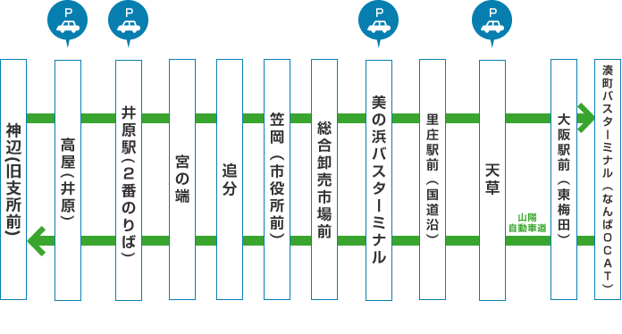 神辺・井原・笠岡・里庄~大阪(カブトガニ号)
