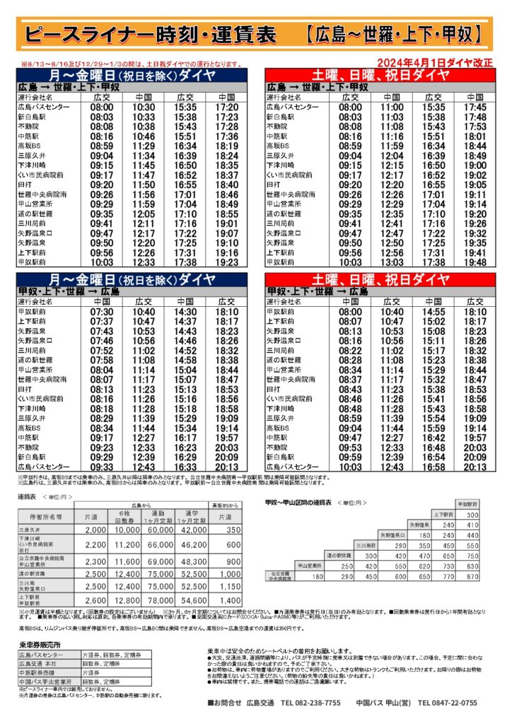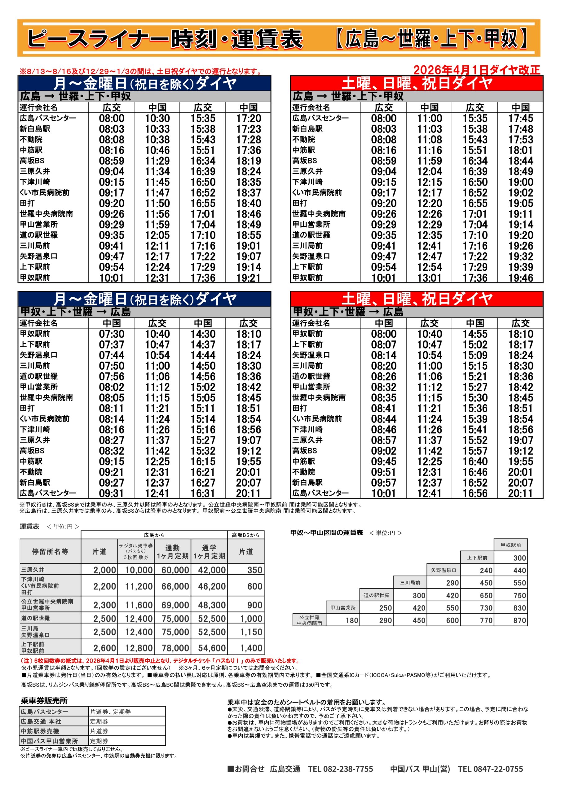 INFORMATION甲奴・甲山・上下~広島(ピースライナー)について