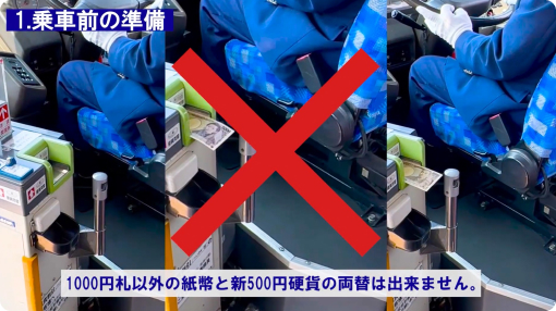 バス車内では千円札以外の紙幣・新500円硬貨は両替できません。